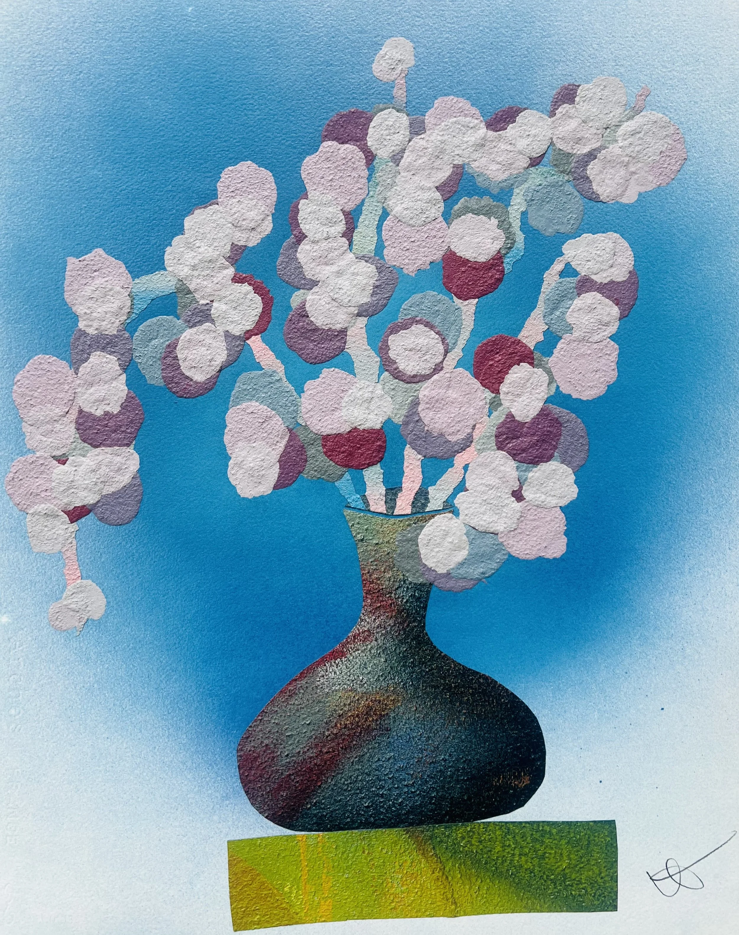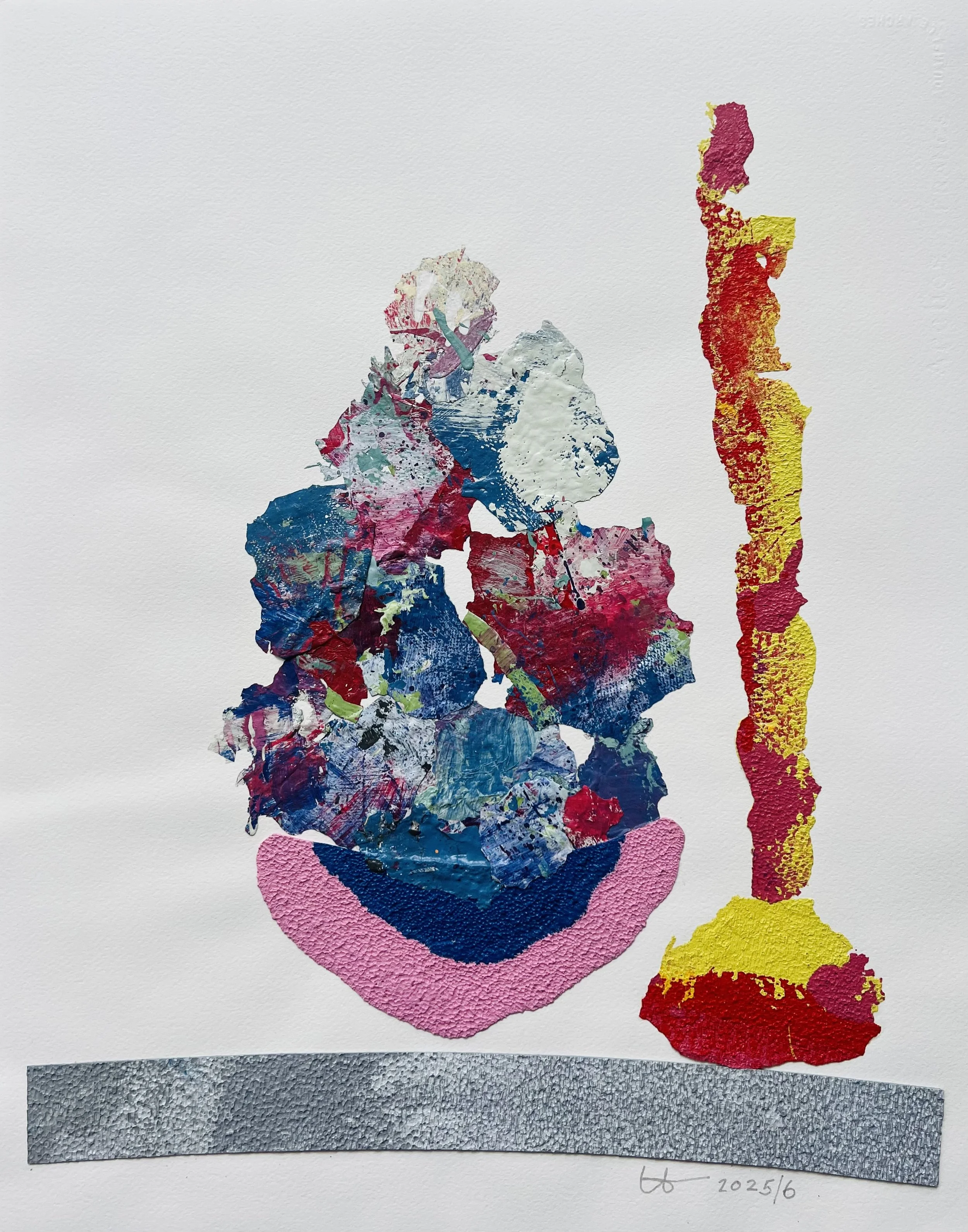 Material: Recycled building paint & reused spray paint on handmade Arches Paper. Custom wood frame, museum grade UV-Protective Acrylic on archival mat.